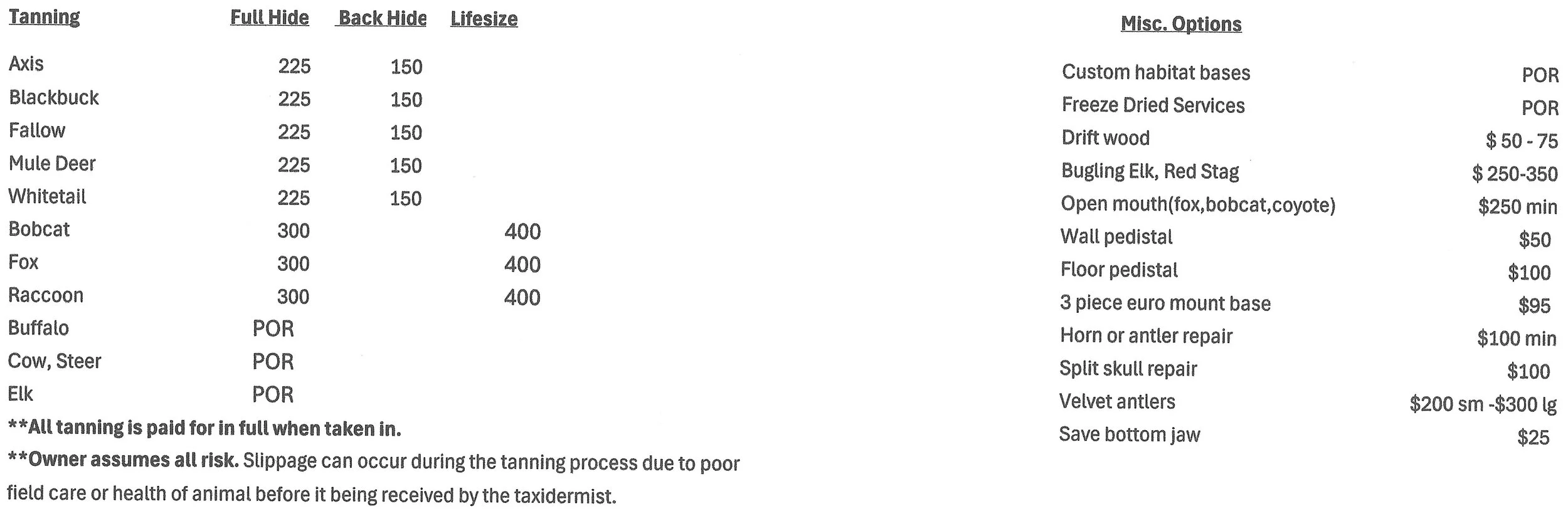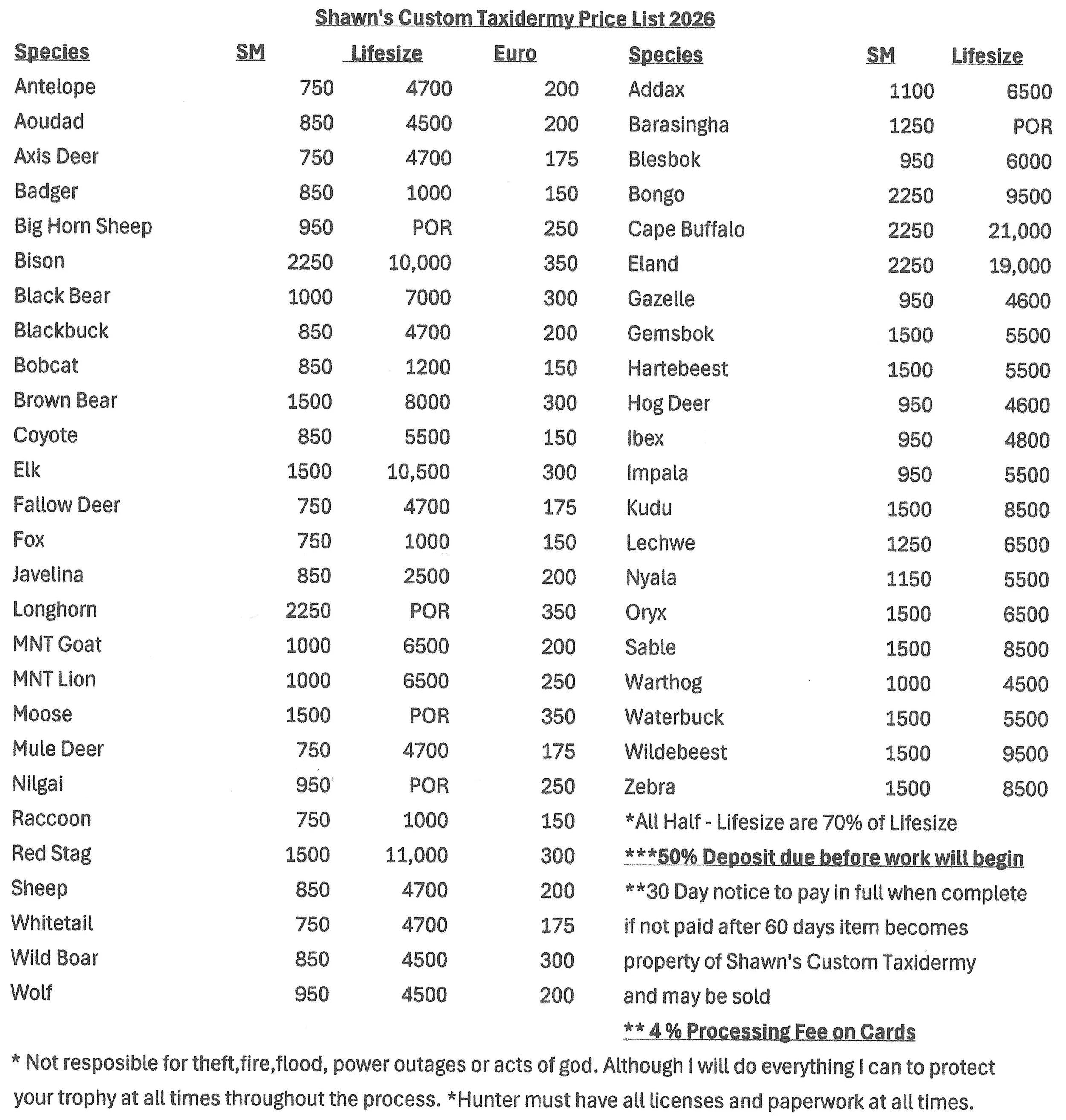 At Shawn's Custom Taxidermy, we take great pride in providing our customers with a pricing structure that is not only competitive but also honest. Our philosophy is to offer fair prices without compromising the quality of our work.